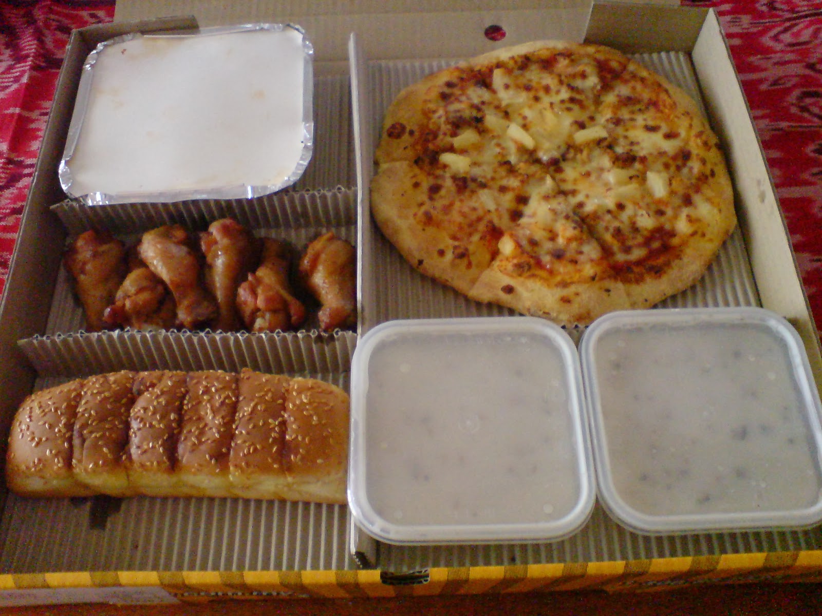 Pertama kali beli Pizza Hut Big Box.. Puas hatilah juga.. Makan dengan En Salleh, papa dan mama.. Kebetulan En Salleh dapat baucer Pizza Hut RM10 hari tu.. Jadi dapatlah beli Big Box ni dengan harga murah sikit... haha..
